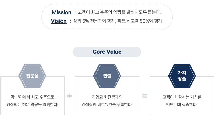 고객이 최고 수준의 역량을 발휘하여, 지금까지 도달하지 못했던 성과를 거두도록 돕겠습니다.